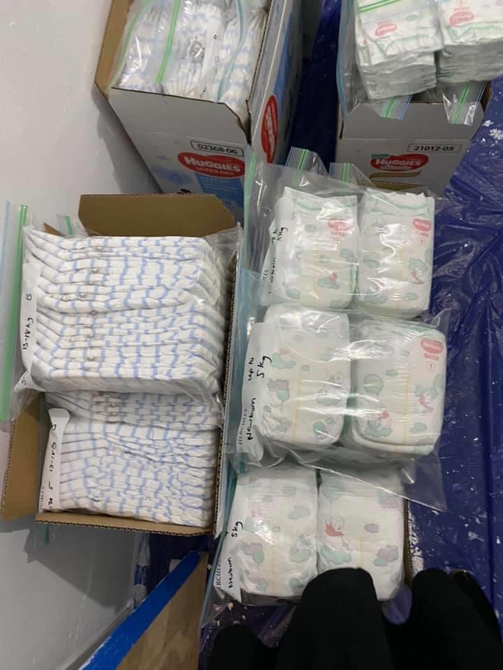 What a team! Our super volunteers masked up, kept at least 1.5m apart, took their temps, sanitised and gloved their hands to make up 50 infant packs with nappies, baby food and wipes, and 60 Period Packs with pads, tampons, liners and three pairs of underwear from Silent Arrow in each box.